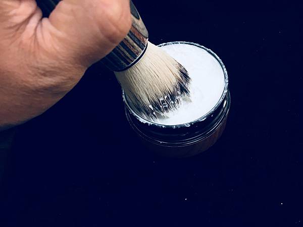 按照正統儀式,準備來起泡吧!當然要拿同樣是木紋設計的OMEGA刷來一起搭配。