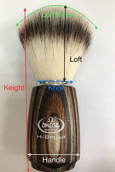 Handle : 手柄的大小,通常手柄大小會覺得刷子的大小,刷子越大起泡越快,也越容易起出綿密的泡沫,而小刷子是操作靈巧,攜帶也方便